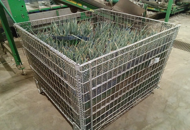収穫した玉ねぎを鉄コンテナごと輸送 | メッシュコンテナ -