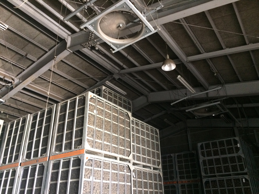 鉄コンテナで集荷した馬鈴薯。JA倉庫で風を当てて貯蔵。| スチールコンテナ